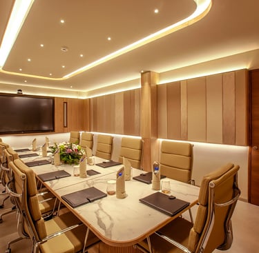 Elevate your professional engagements in a space designed for focus and impact. Our state-of-the-art Boardroom is the perfect synthesis of modern technology and executive comfort, making it the premier choice for high-stakes meetings, corporate presentations, and intimate seminars. Located away from the hustle of the main lobby to ensure absolute privacy, the room is equipped with high-speed Wi-Fi, seamless audio-visual integration, and ergonomic seating to keep your team productive. Whether you are hosting a local team briefing or a global video conference, our dedicated staff provides personalized secretarial support and catering services to ensure your event is as successful as it is professional.